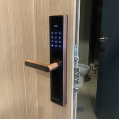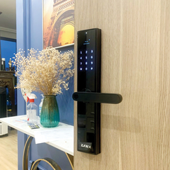 - Thiết kế cảm biến vân tay ẩn trên tay cầm. Có thể nhập vân tay bằng mọi hướng, tiện lợi cho việc mở cửa