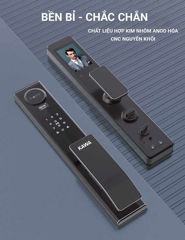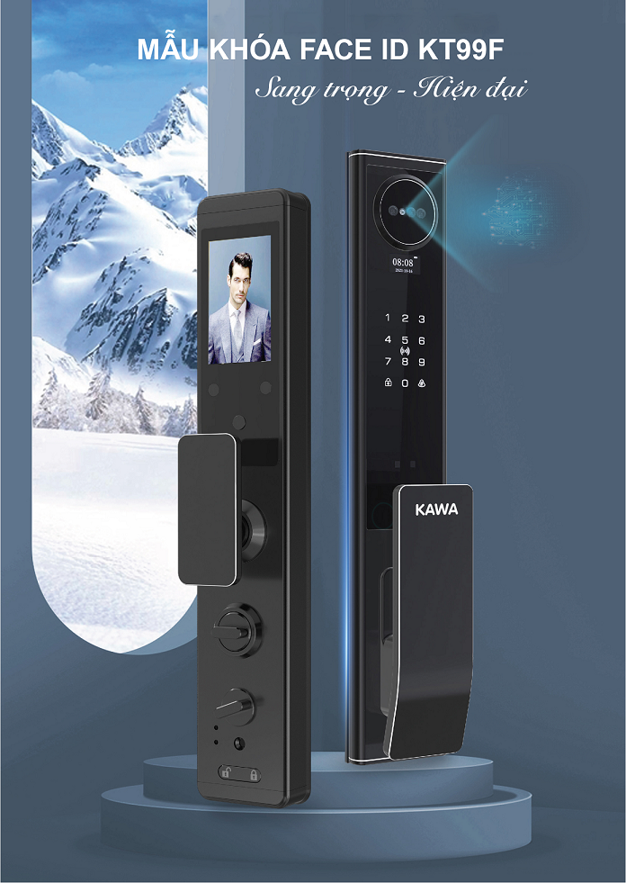 Model khóa vân tay KAWA KT99F - Mẫu khóa FACE ID 3D hiện đại. Ra mắt 2023, KT99F nhận được nhiều quan tâm và yêu thích từ khách hàng.